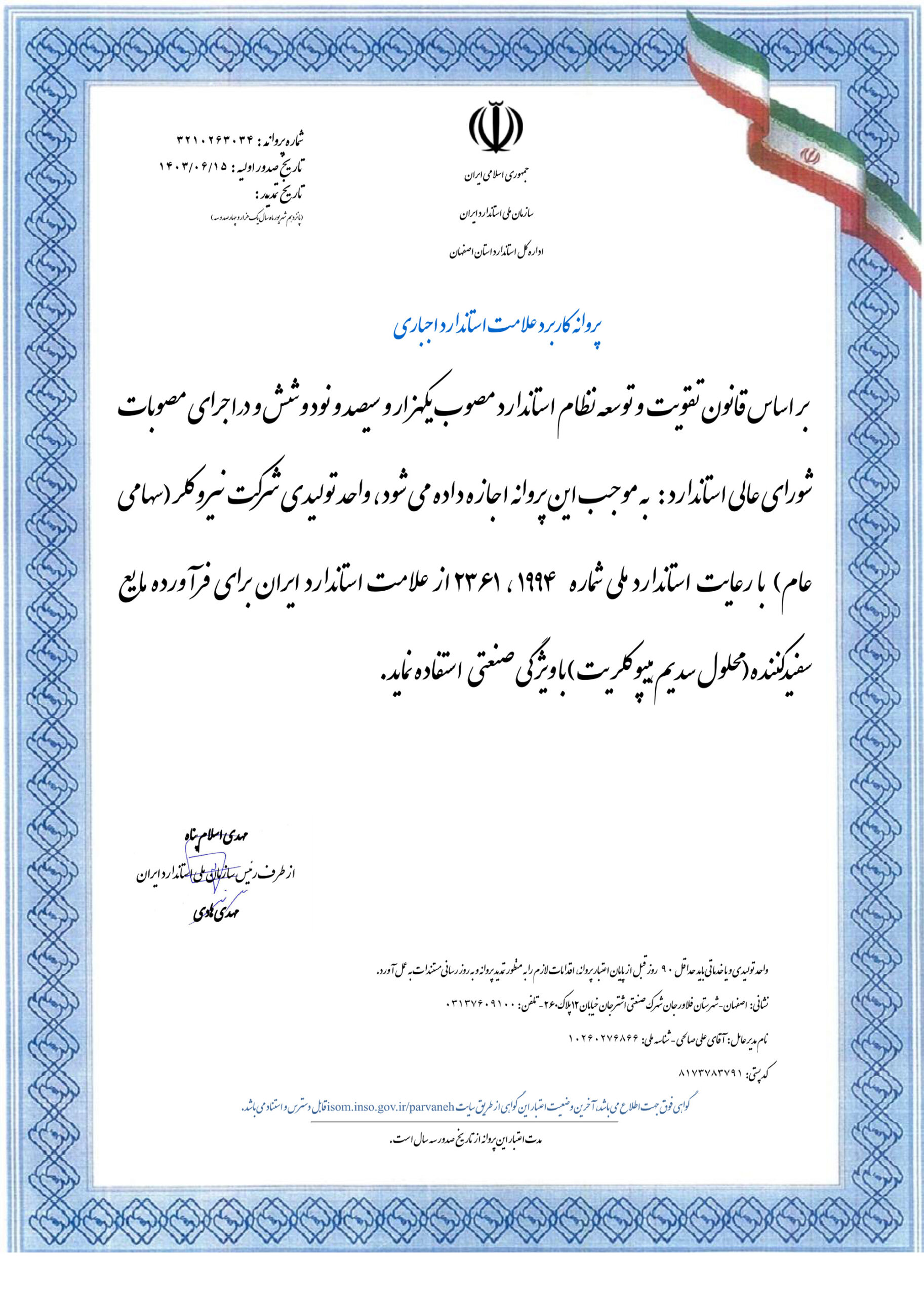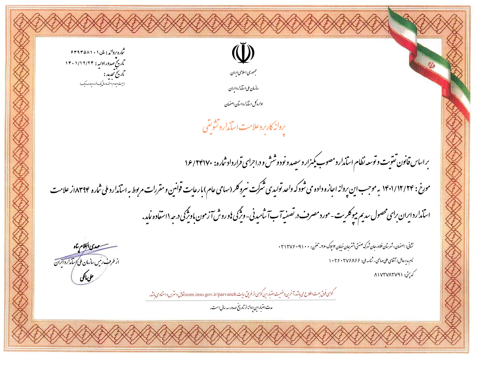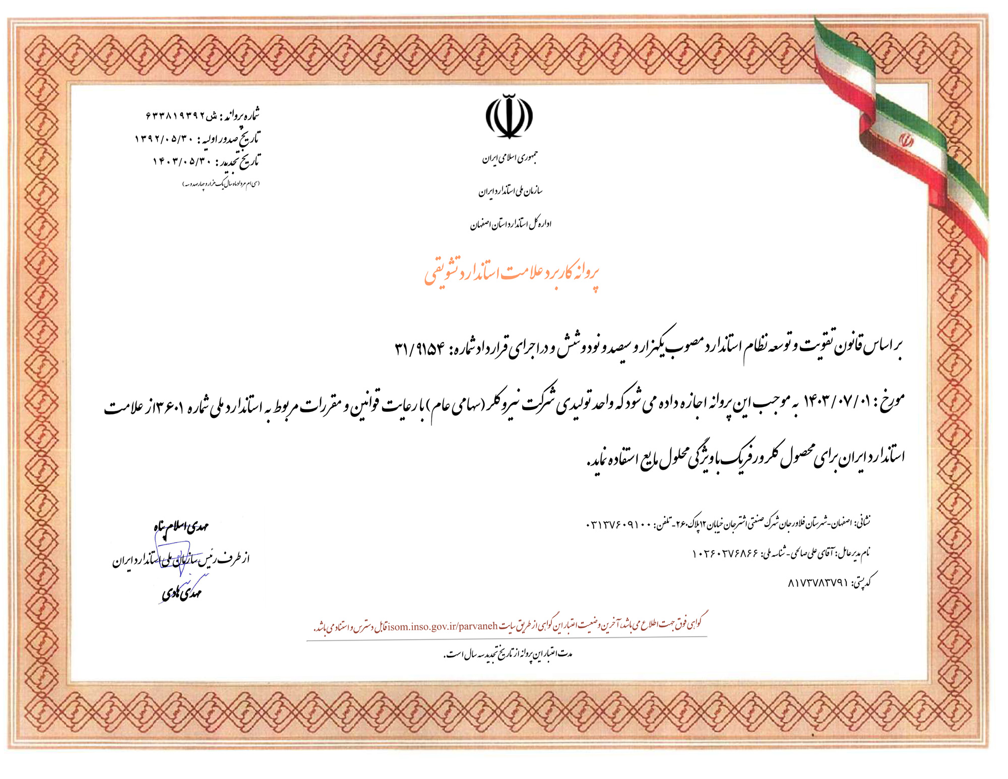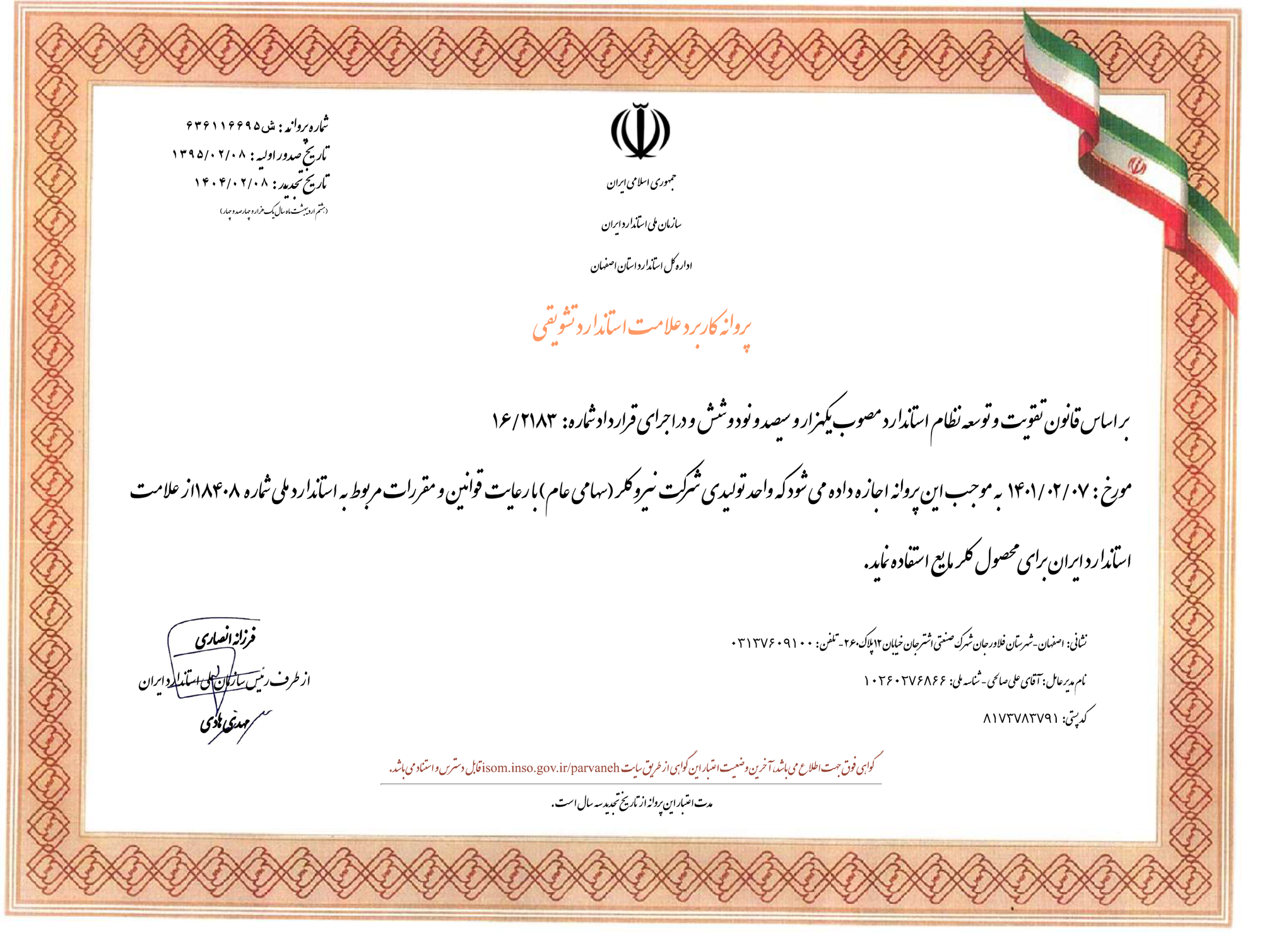 پروانه کاربرد علامت استاندارد محصولات