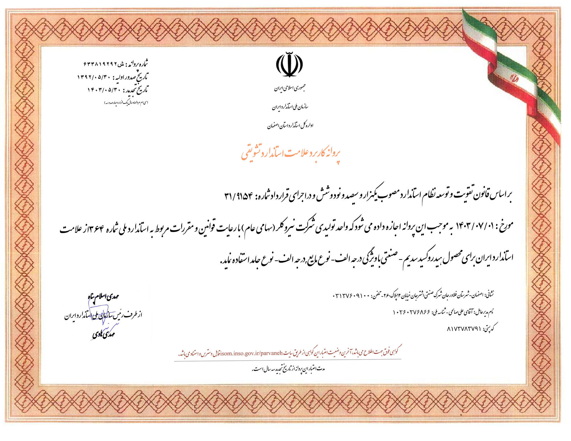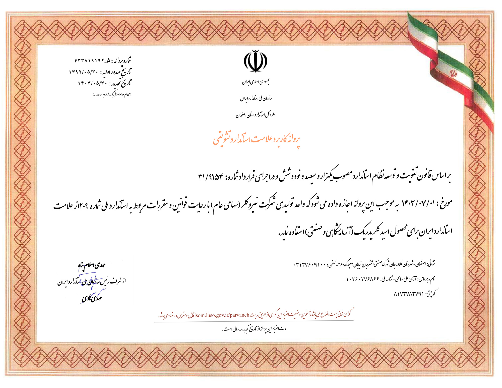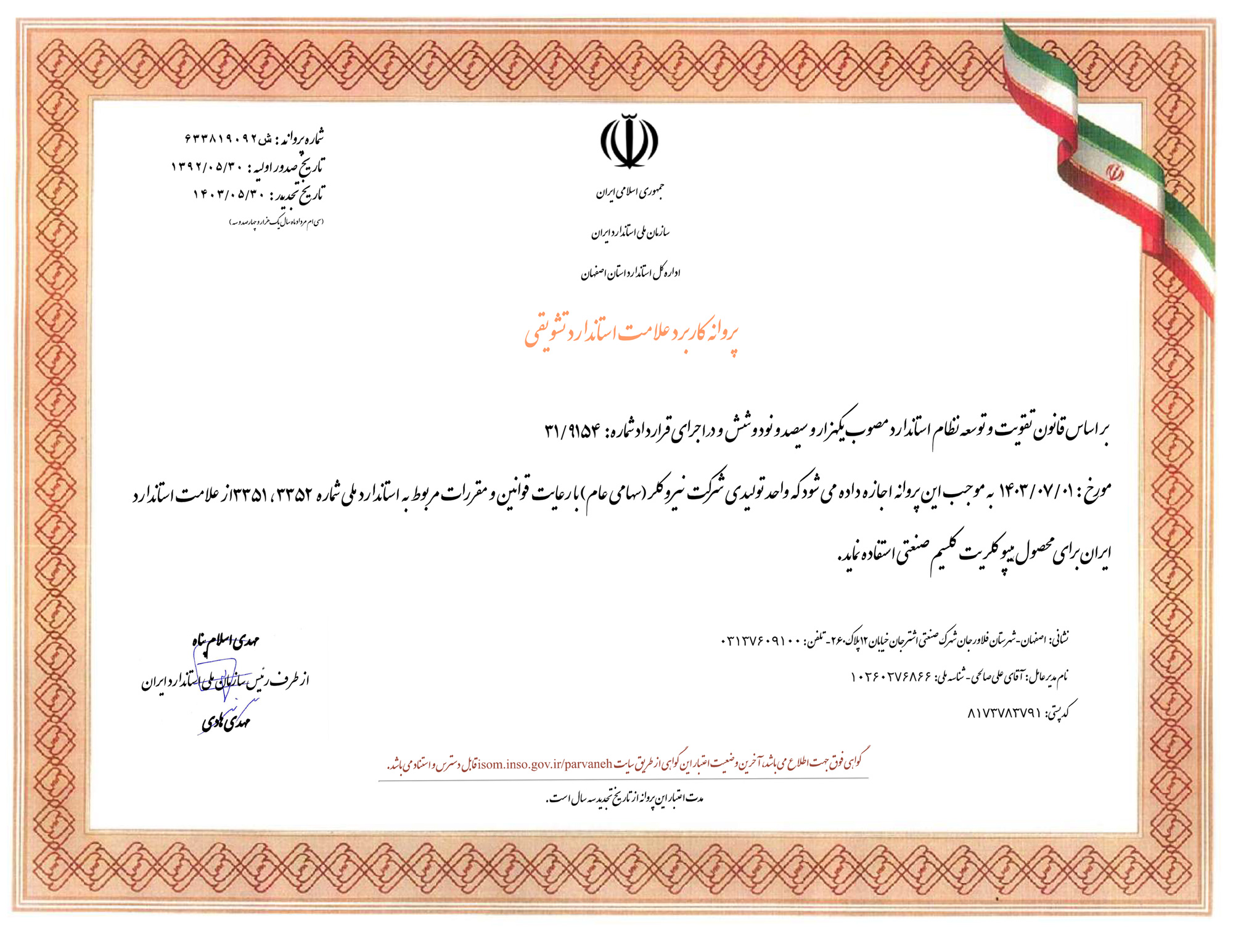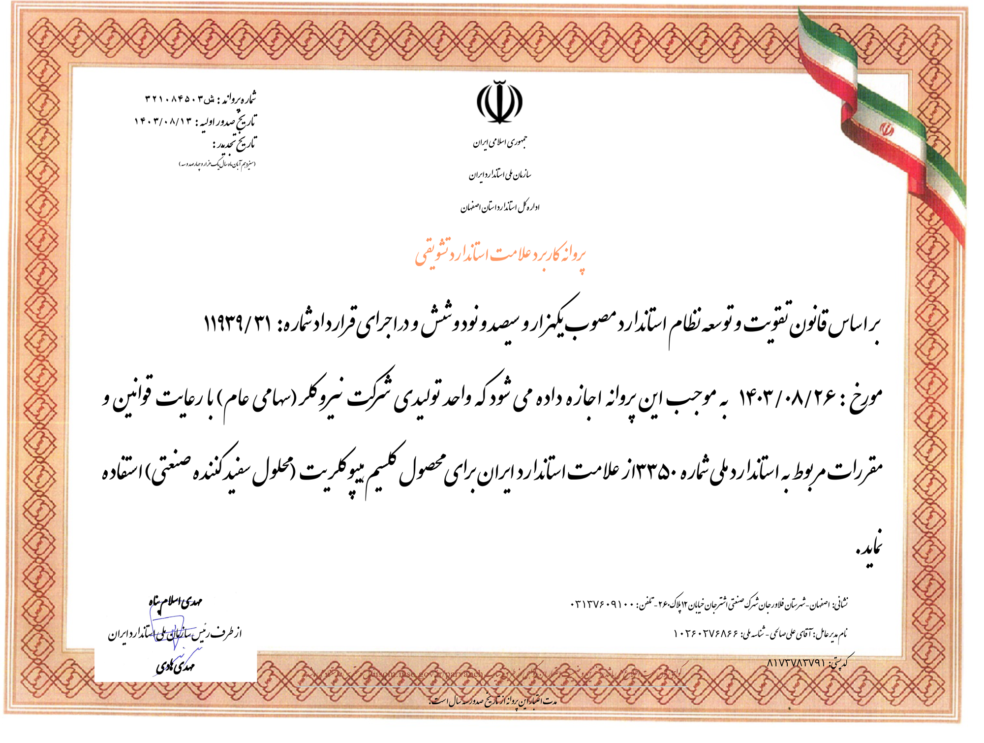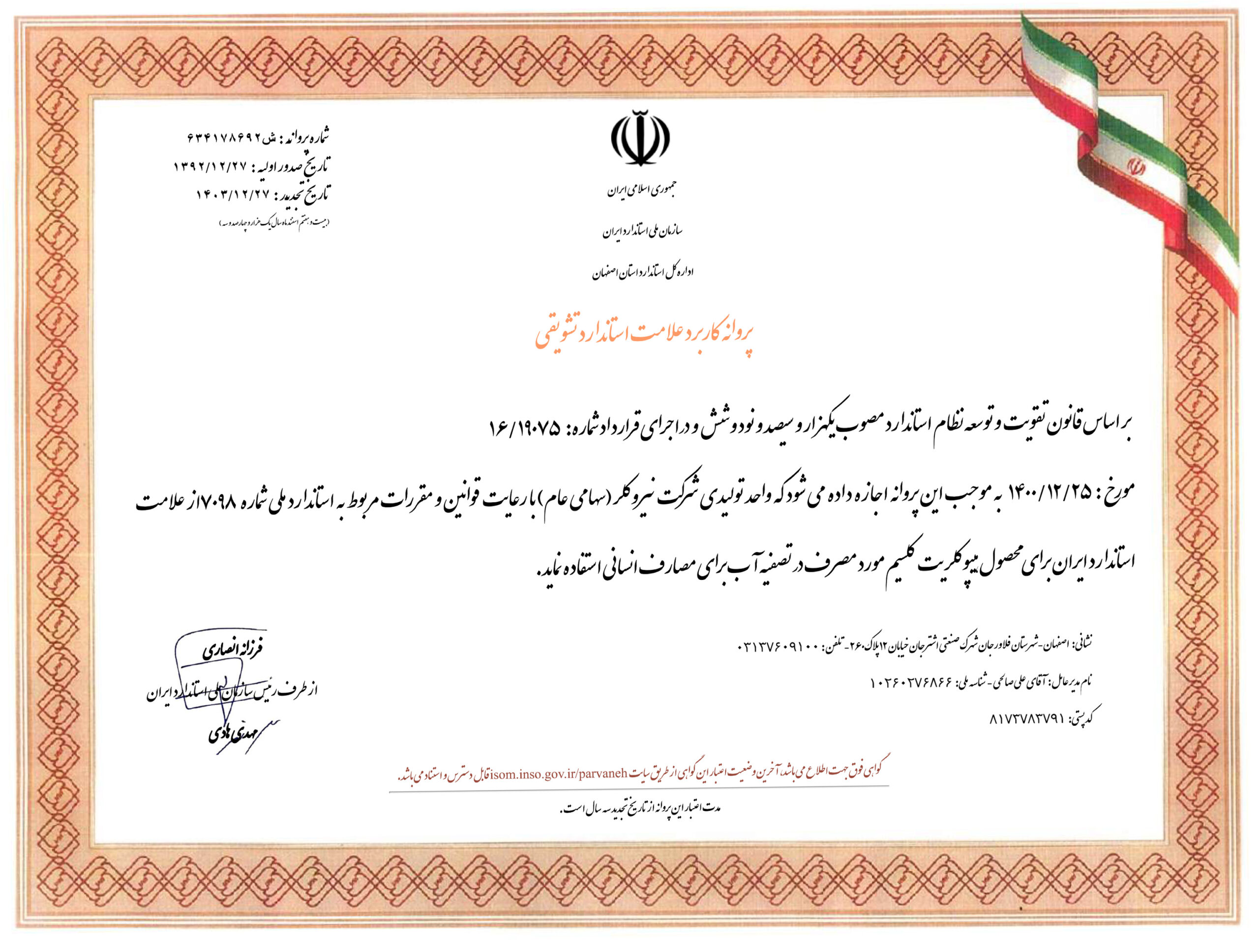 پروانه کاربرد علامت استاندارد محصولات