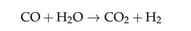 متعاقباً، مونوکسید کربن تولید شده، واکنش اضافی (جابجایی) با بخار آب انجام میدهد که تولید هیدروژن و آزادسازی CO۲ را به حداکثر میرساند، همانطور که در معادله (۴) نشان داده شده است: